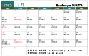 🍔11月の営業案内です。11月もよろしくお願いします。