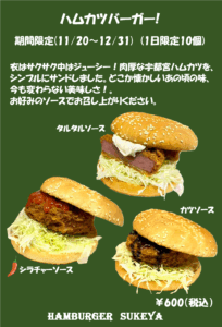 🍔期間限定 ハムカツバーガー!