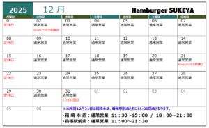 🍔12月の営業案内です。今月もよろしくお願いします。